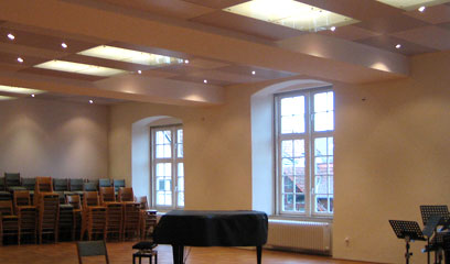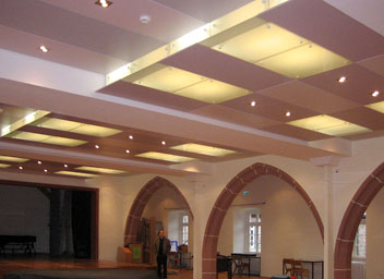 Die mittelalterliche Kirche des Benediktinerklosters zu Schlüchtern wurde bereits im 19. Jahrhundert durch eine Lateinschule genutzt. Anfang der 1960er Jahre waren mittels gewaltigen Stahlträgern Mittel- und Seitenschiff verbunden und mit einer Holzdecke verkleidet worden, die heute weder Brandschutz- noch akustischen Anforderungen genügt.